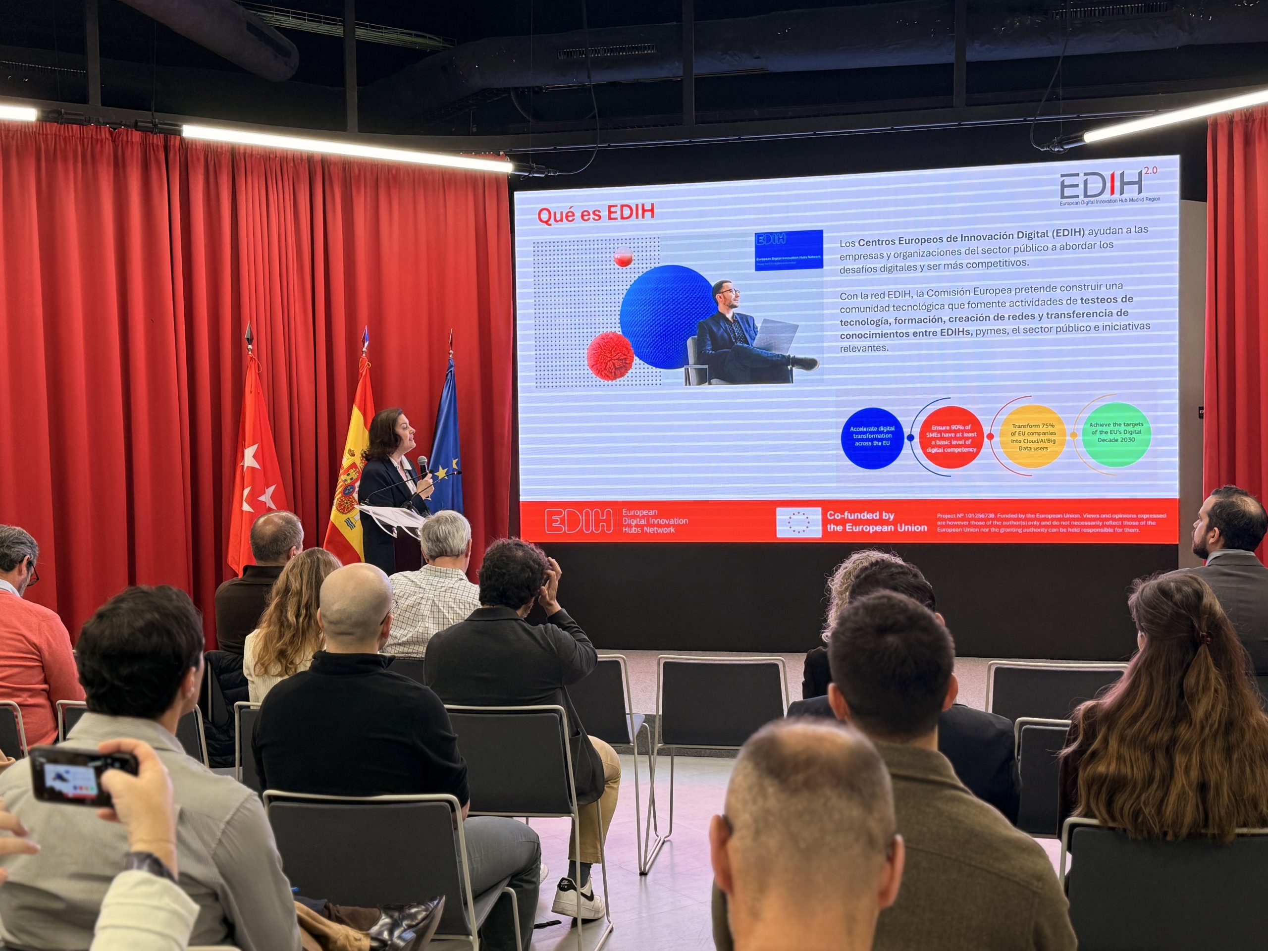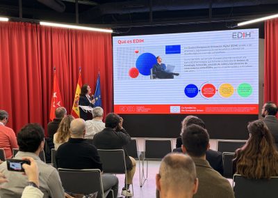 El evento ha contado también con la participación de Sandra Busturia, técnico de proyectos en la Fundación para el Conocimiento madri+d, quien ha presentado el marco del programa EDIH Madrid Region 2.0.
